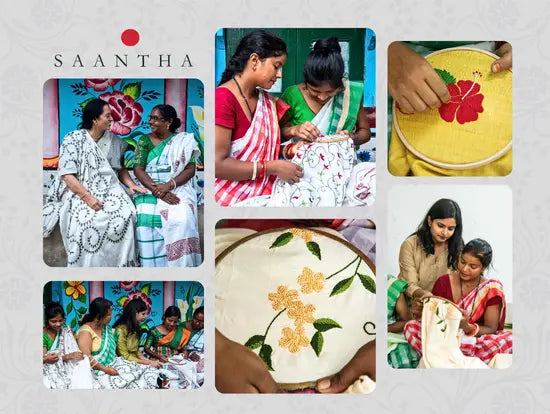 Saantha is an eco-social movement founded under the vision of renowned social worker Suchitra Sinha, who has been working for the socially and economically deprived rural and tribal communities in Jharkhand for over 25 years. Saantha aims to empower women artisans of Jharkhand while bringing more transparency to the hand embroiderers and weavers who so dedicatedly hone their craft to create pieces customers will truly cherish.